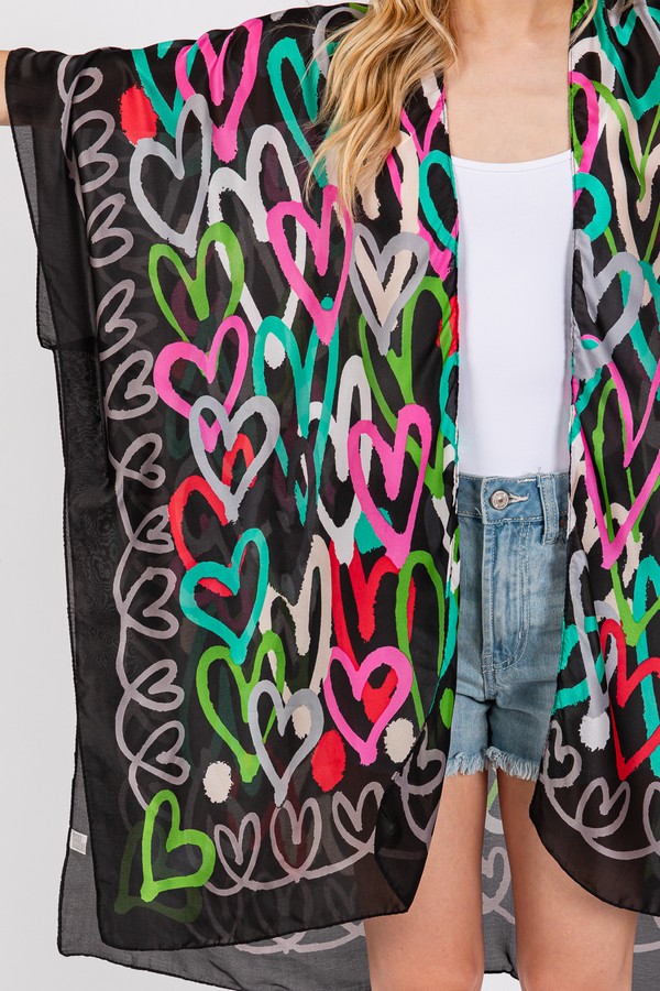 - * Discover the "Multi Colored Heart Print Silky Feel Kimono" – where fashion meets affection. This beautifully designed kimono features multi colored heart print, offering a luxurious silky feel that will make you stand out. Embrace your unique style with H&D Accessories.