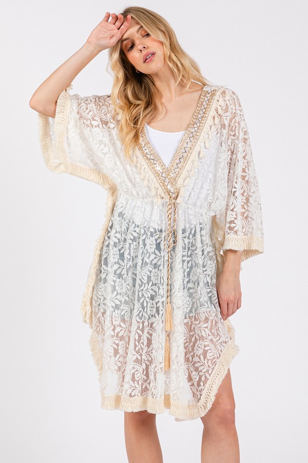 - * FLOWER LACE TASSEL DECO COVER UP.