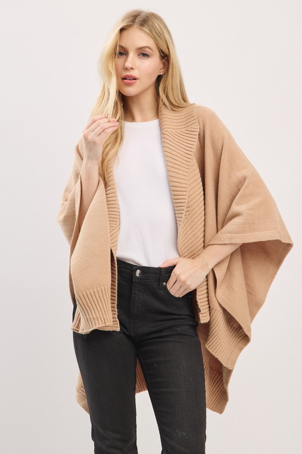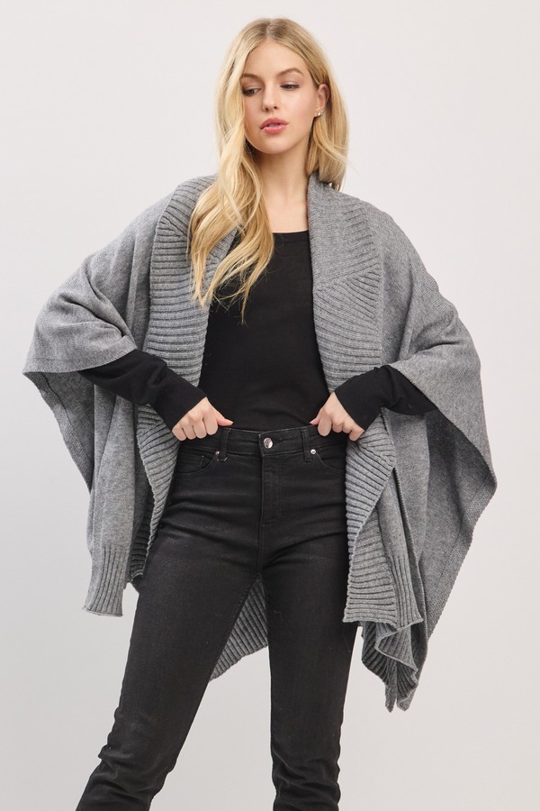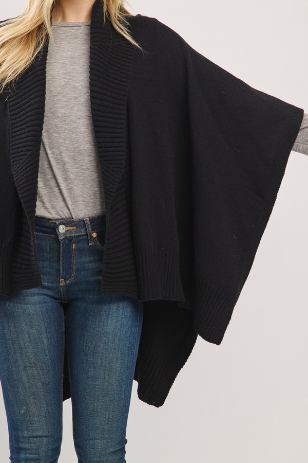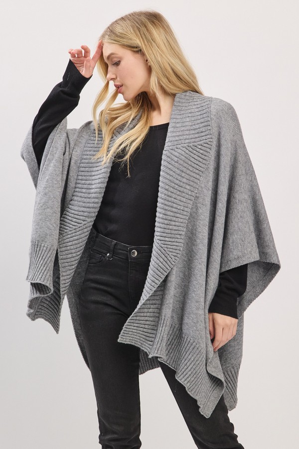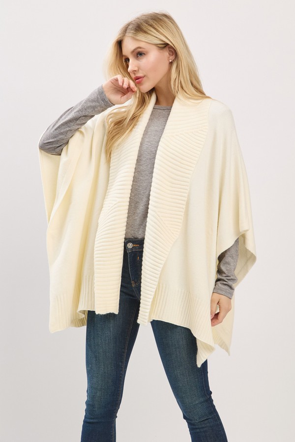 - * Soft Knit Open-front Shawl with Ribbed Trim