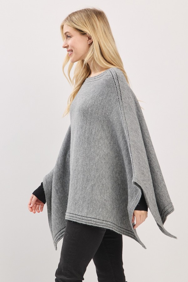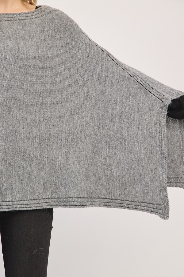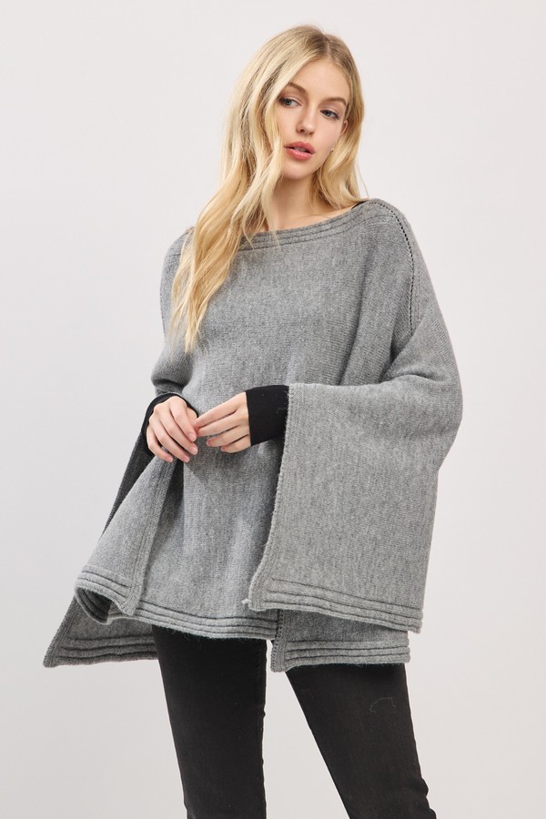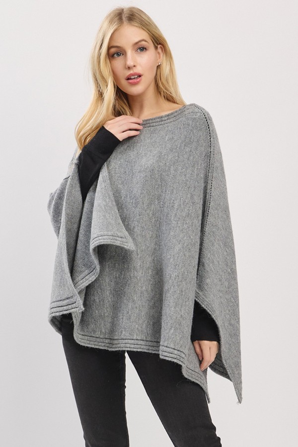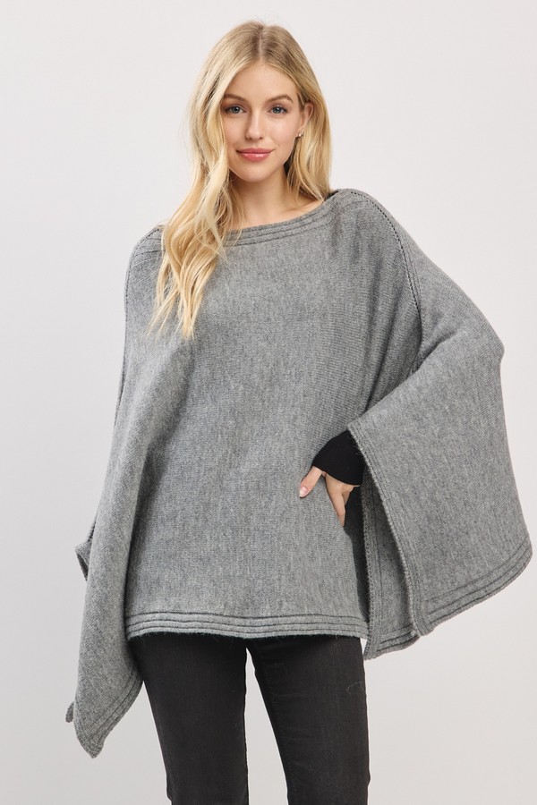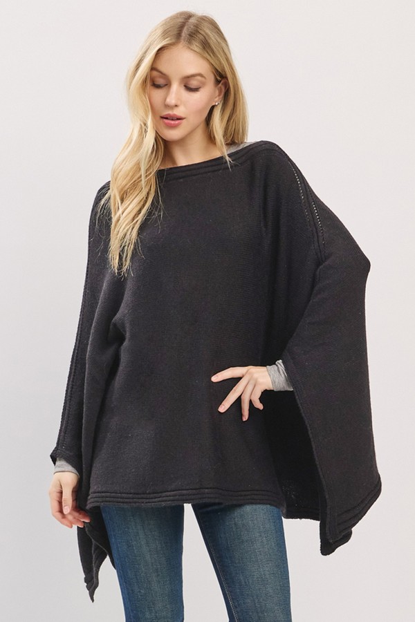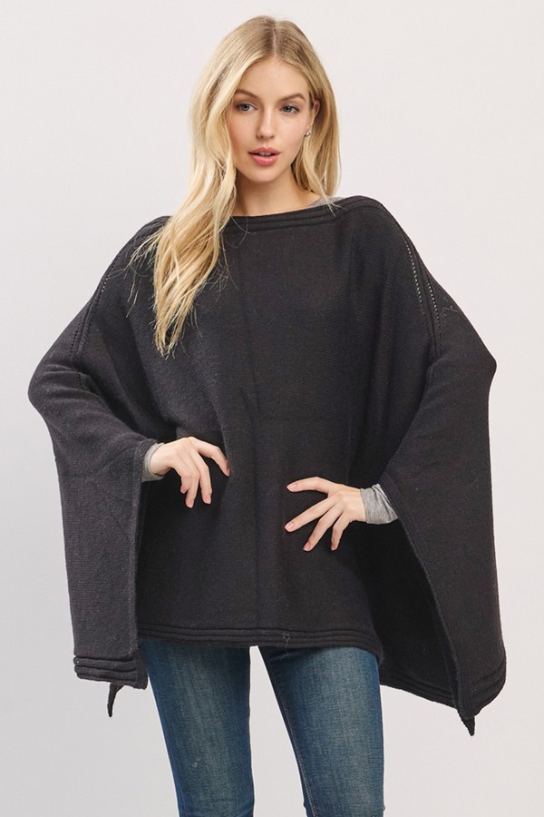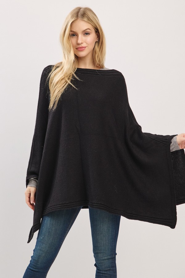 - * Solid Knit Poncho with Wide Sleeves and Clean Edges