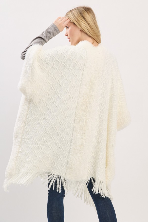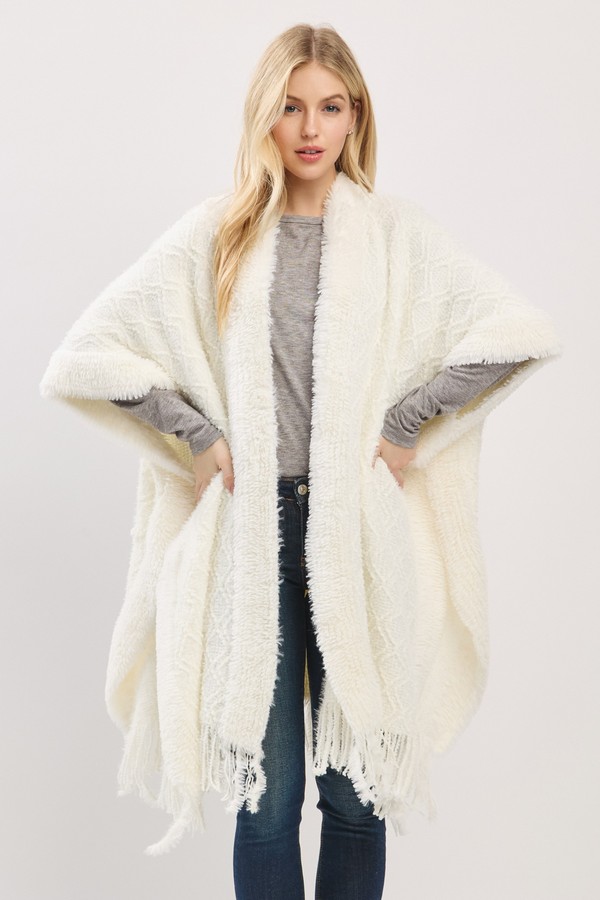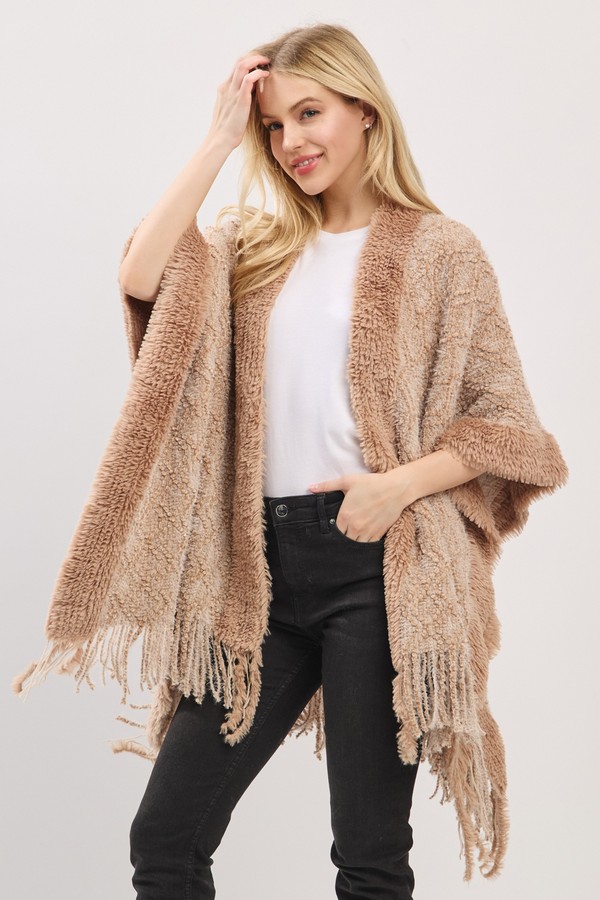 - * Cozy Boucle Knit And Soft Drape Fringe Shawl