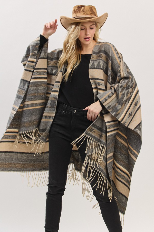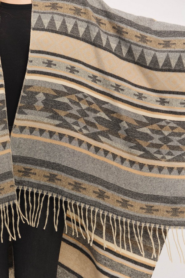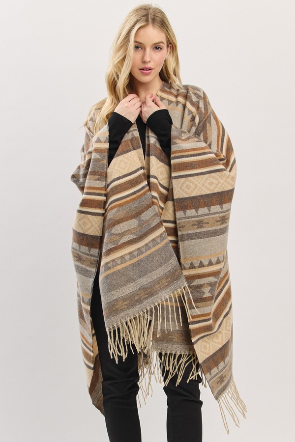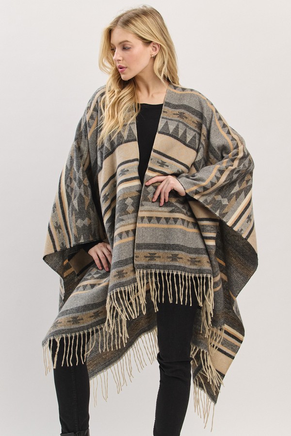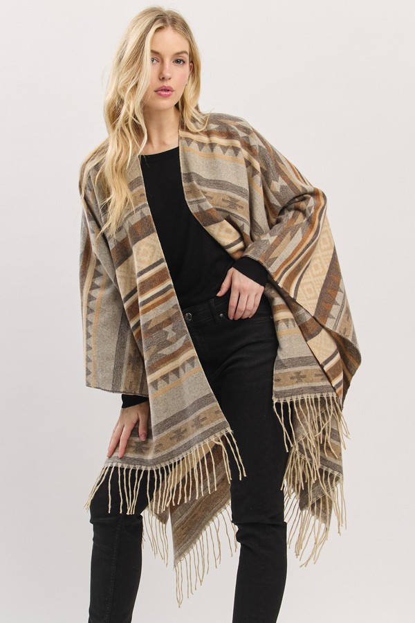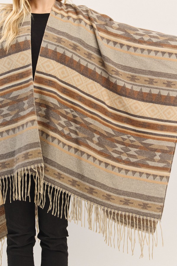 - * Aztec Pattern Fringe Ruana