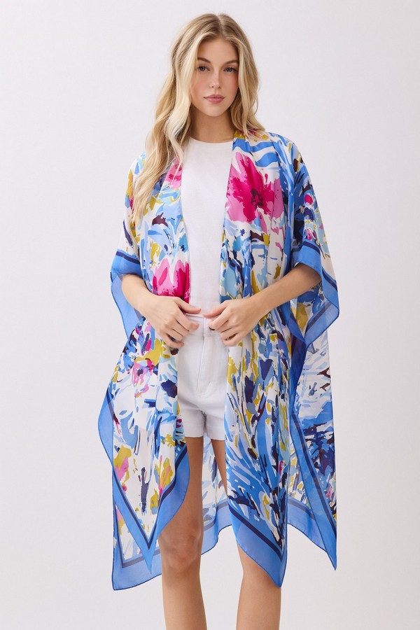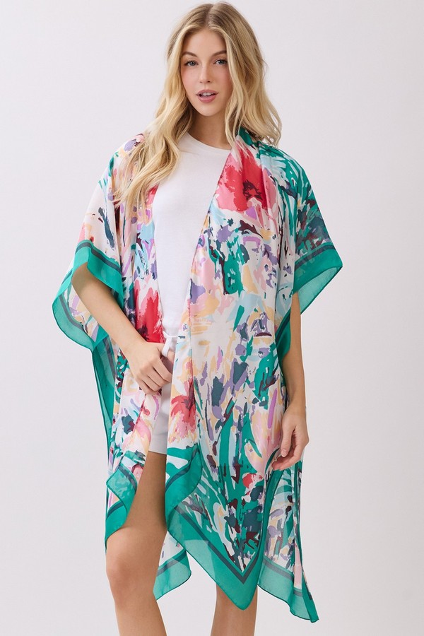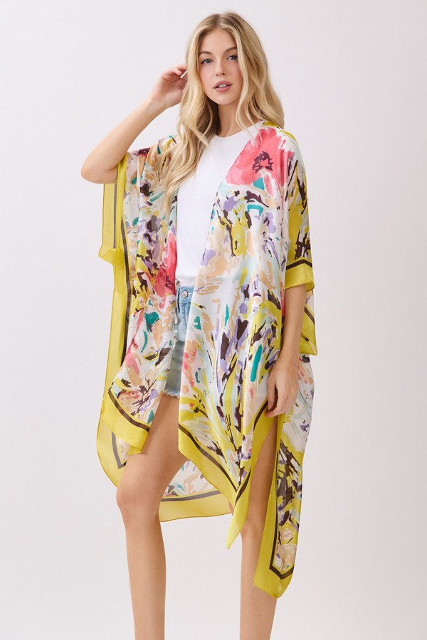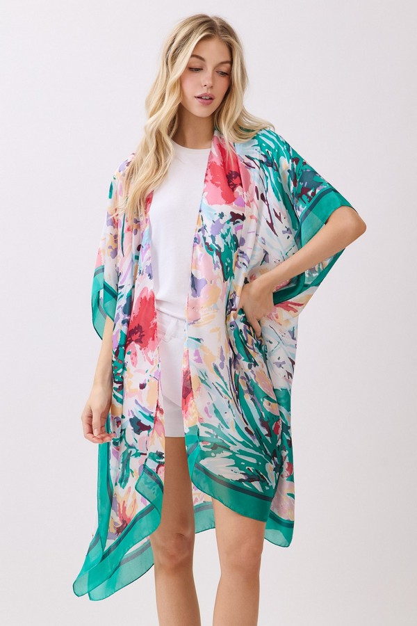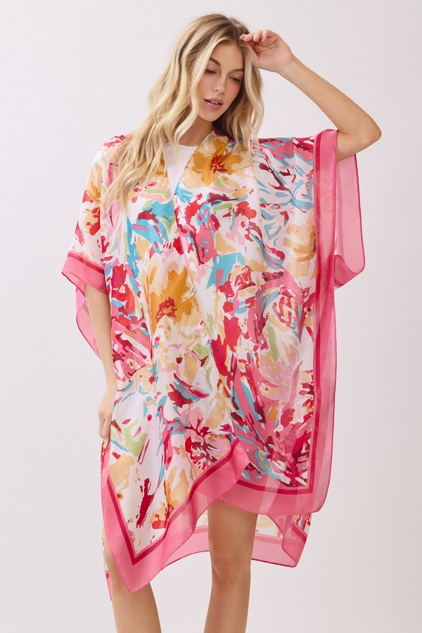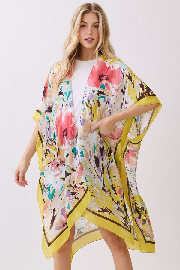- * This Abstract Floral Print Silky Feel Kimono from H&D Accessories is crafted from lightweight, flowy fabric with a smooth, silky touch, featuring a vibrant abstract floral print with bold, painterly accents. Its relaxed, open-front silhouette makes it a versatile layering piece, ideal as a breezy beach cover-up, a chic addition to brunch outfits, or a stylish way to elevate casual everyday looks.