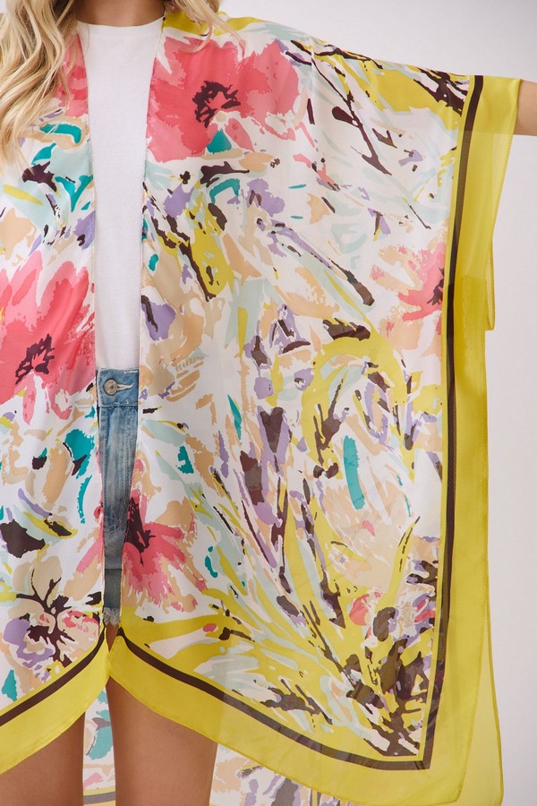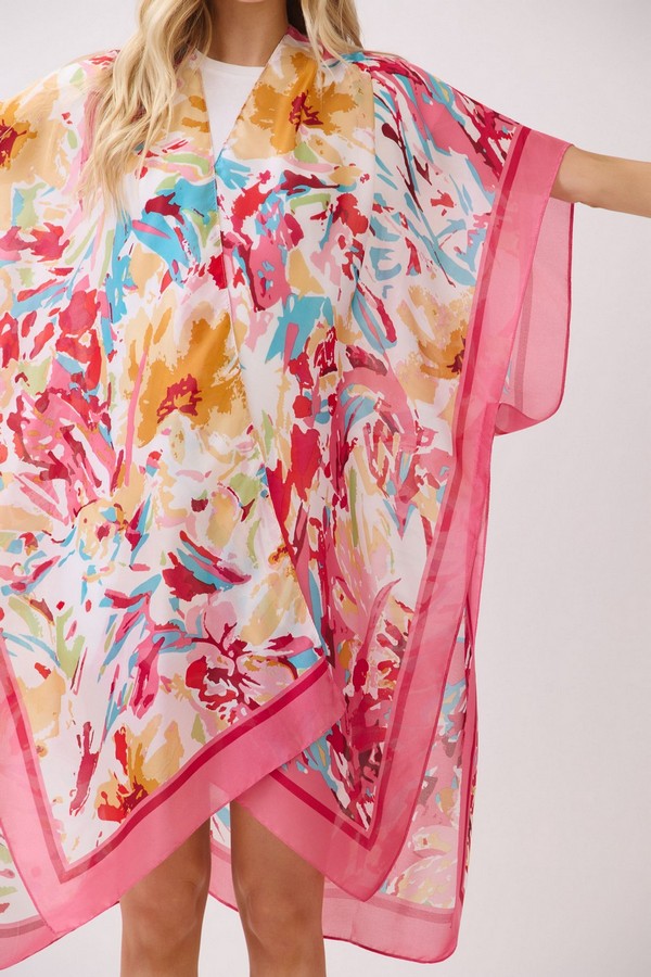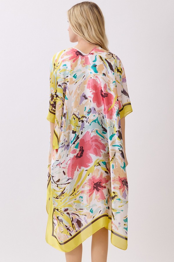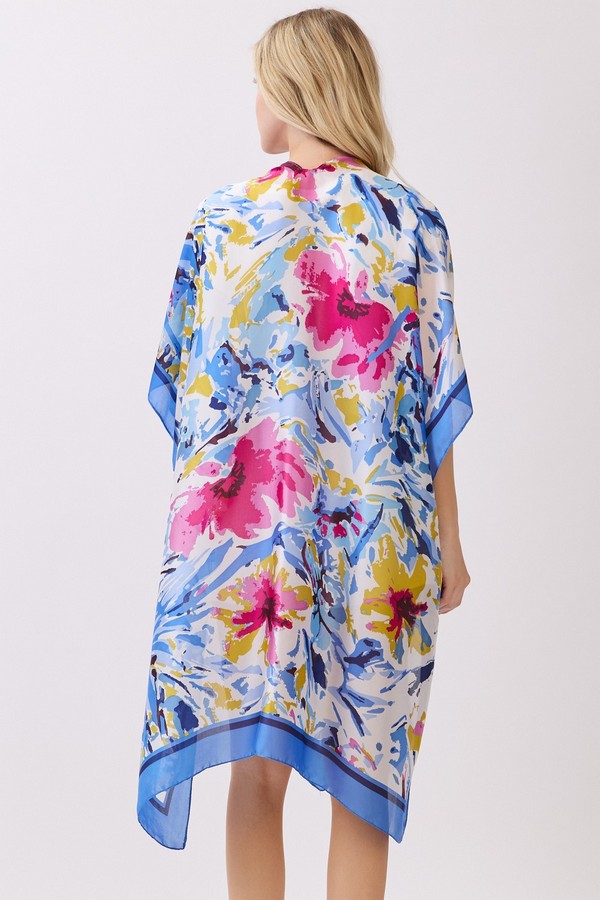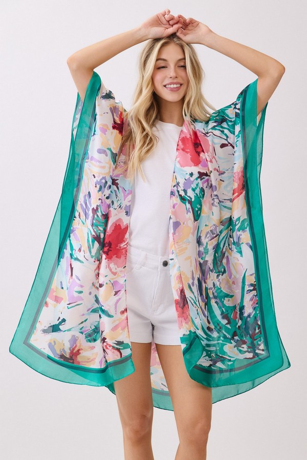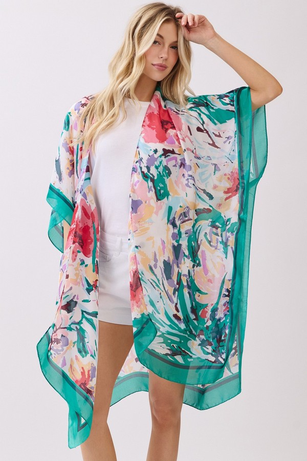 - * This Abstract Floral Print Silky Feel Kimono from H&D Accessories is crafted from lightweight, flowy fabric with a smooth, silky touch, featuring a vibrant abstract floral print with bold, painterly accents. Its relaxed, open-front silhouette makes it a versatile layering piece, ideal as a breezy beach cover-up, a chic addition to brunch outfits, or a stylish way to elevate casual everyday looks.
