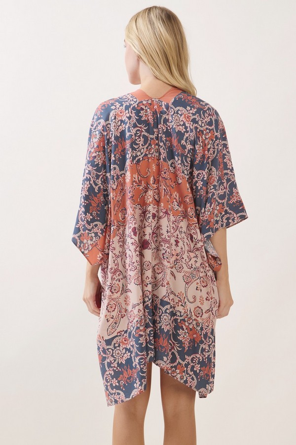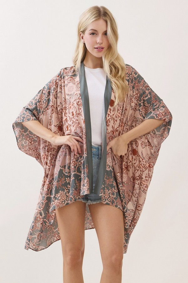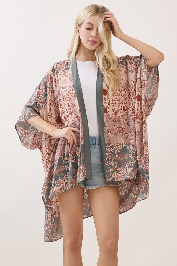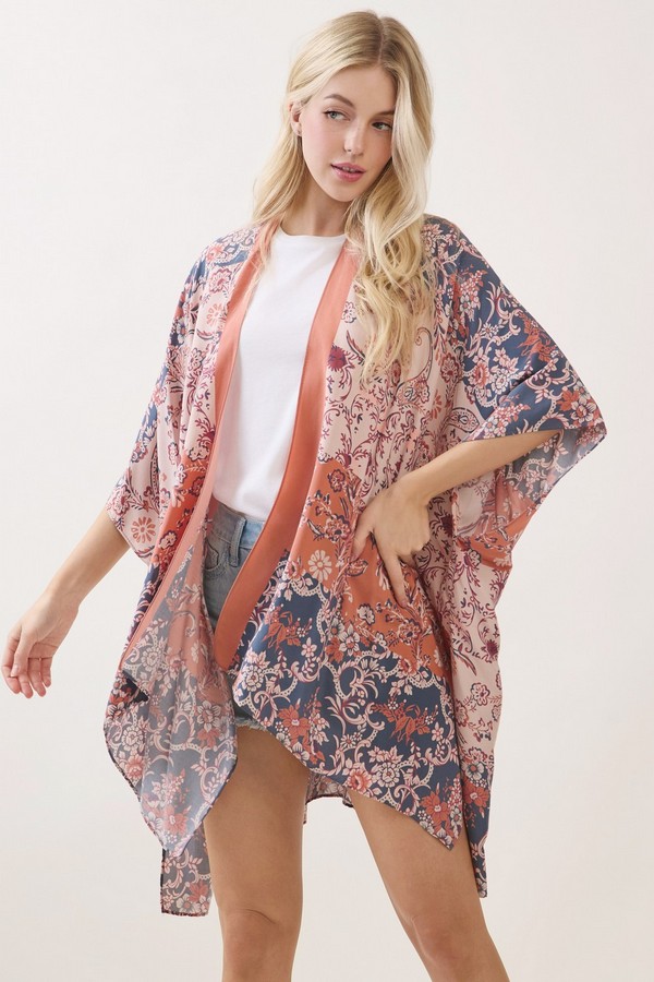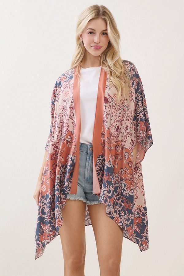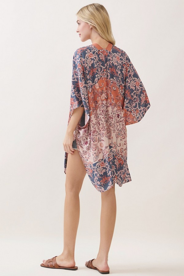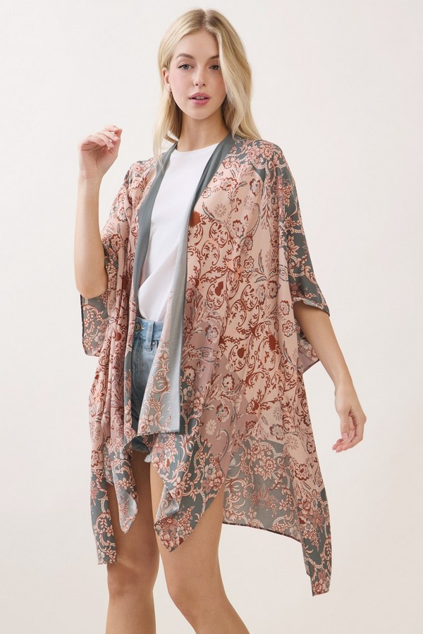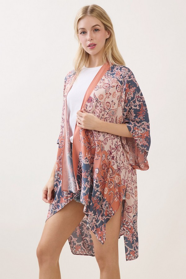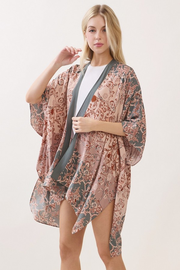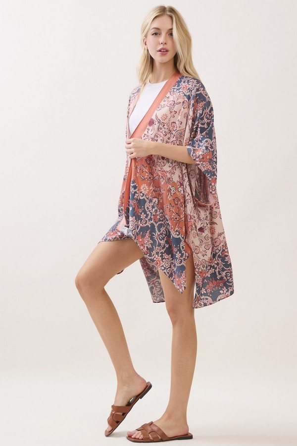 - * This Bohemian Floral Paisley Print Kimono from H&D Accessories is made of lightweight, flowy fabric with a soft, silky feel, featuring an intricate floral paisley print and a contrasting trim for a relaxed bohemian vibe. Its open-front, draped silhouette makes it a versatile layering piece, ideal for adding a romantic touch to brunch outfits, styling as a beach cover-up, or elevating casual everyday looks.