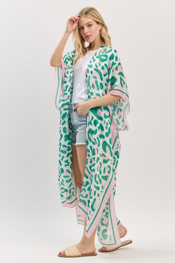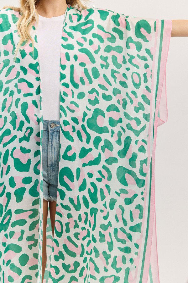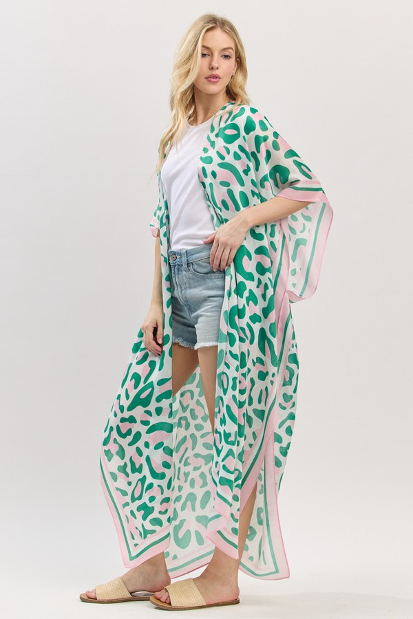 - * This is a Leopard Print Open Front Long Kimono from H&D Accessories. It has a flowing, open - front design with a leopard print pattern. The kimono features wide sleeves and a long length, creating a relaxed and stylish silhouette. It can be paired with simple innerwear and shorts for a chic look.