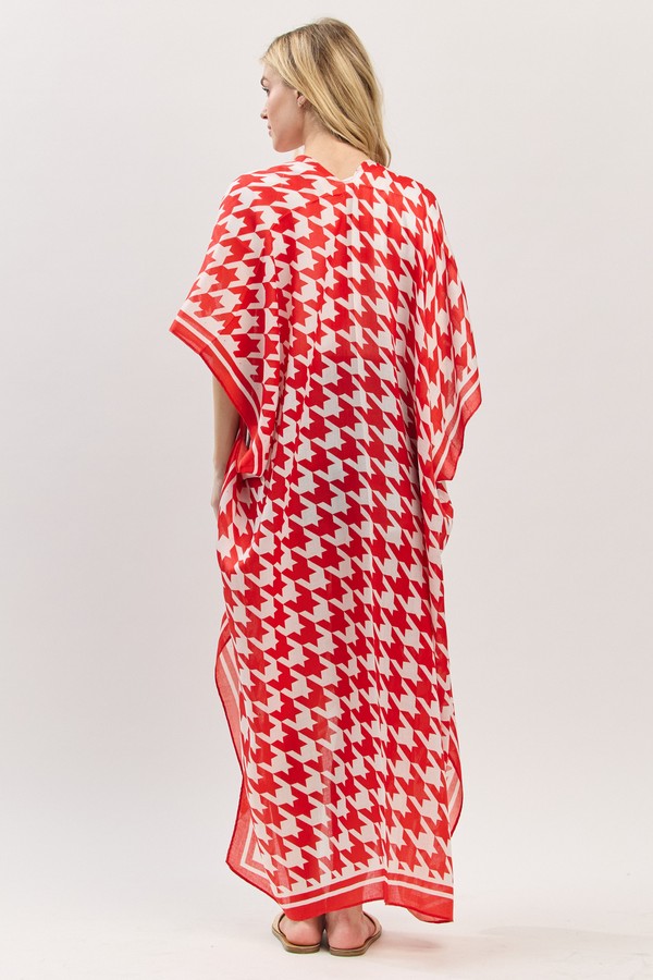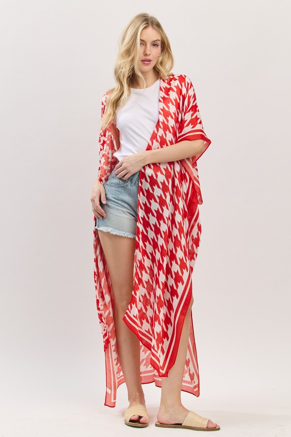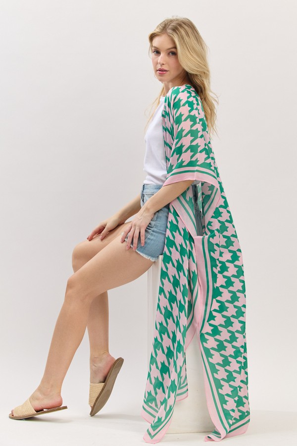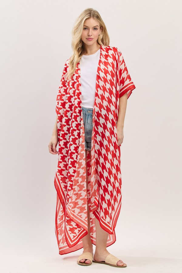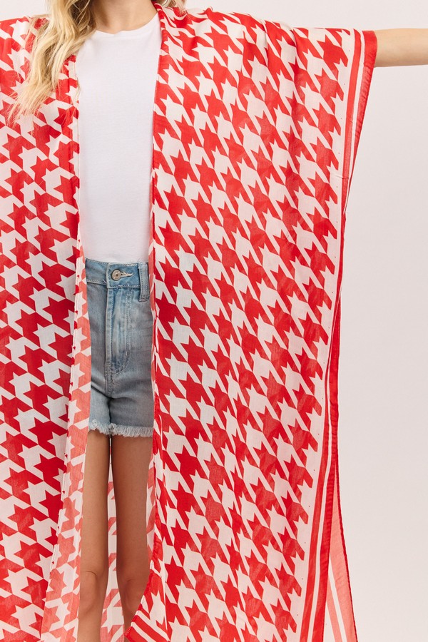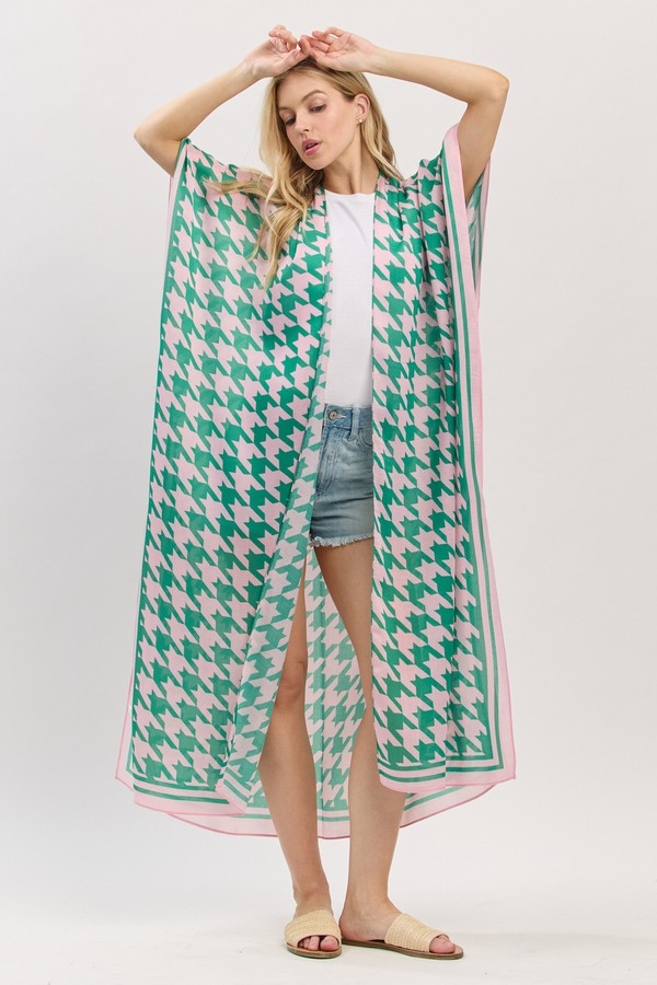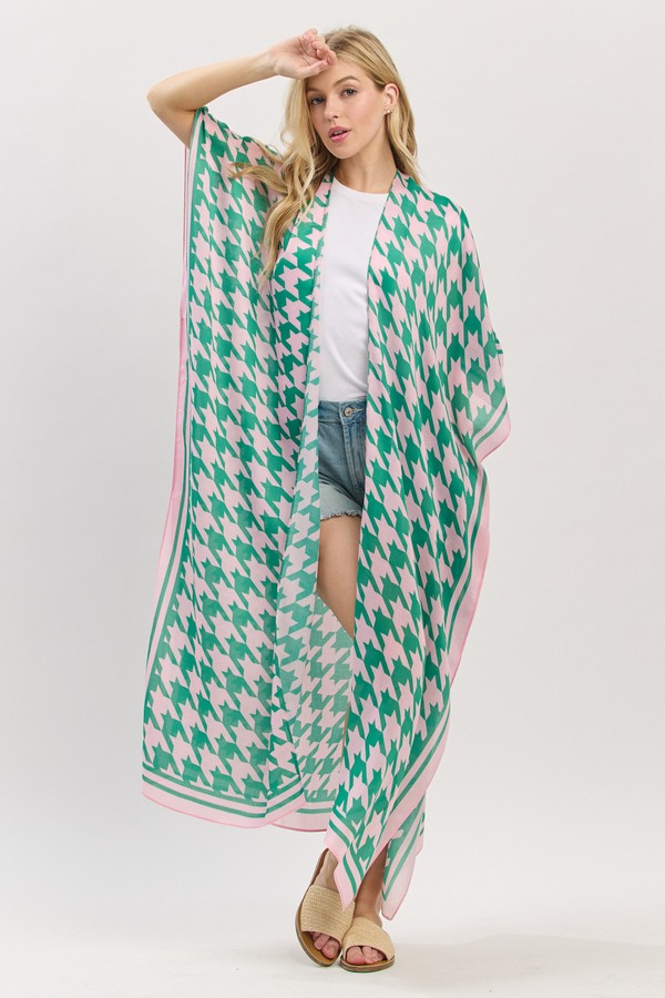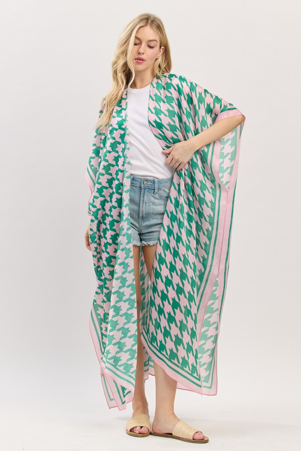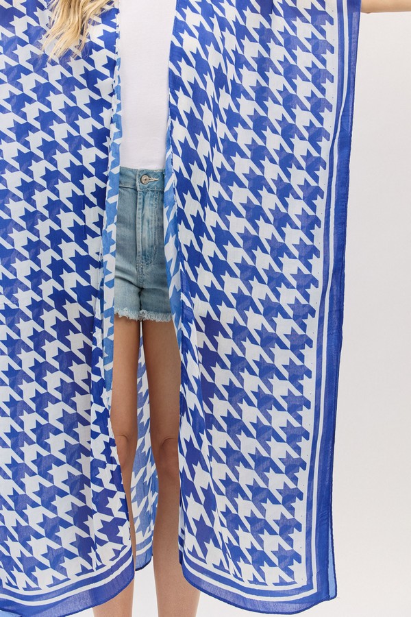 - * This is a Houndstooth Print Open Front Long Kimono from H&D Accessories. It has a flowing, open - front silhouette. The kimono showcases a houndstooth pattern and features wide sleeves. The long length and relaxed fit create an elegant, laid - back look, perfect for easy styling over simple outfits.