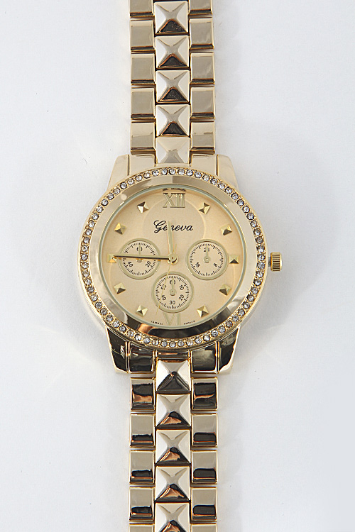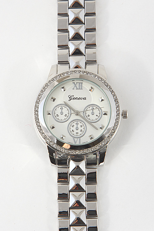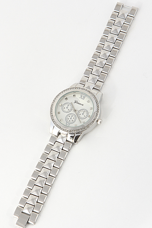 - * Rhinestone Lined Pyramid Stack Watch 4LAE12 * 1.5 x 1.5" approx.