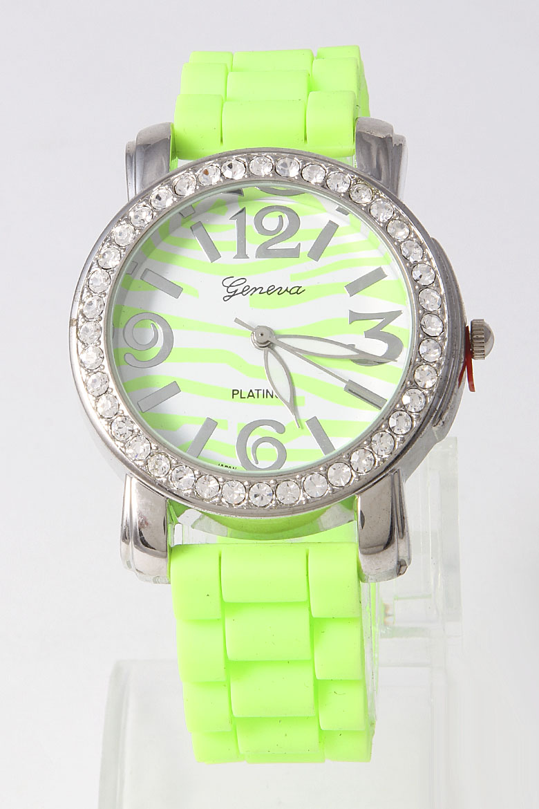 - * Zebra Printed Rhinestone Watch 4HCA4 * 1.5 x 9" approx.