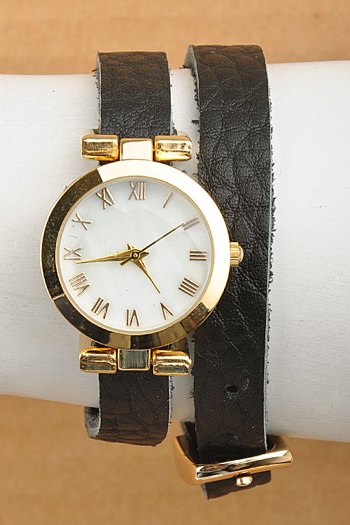 - * Leatherette wrap bracelet watch * Length: 16" approx. * Case Diameter: 1.12" approx.