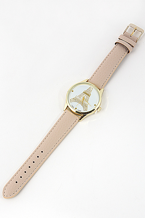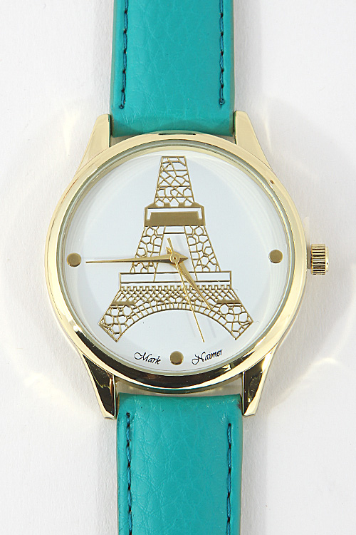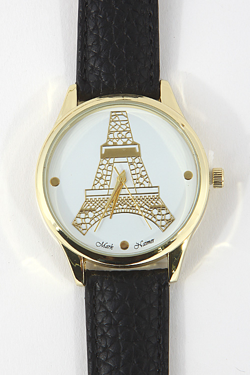 - * Paris Eiffel Tower Strap Watch 4KBI10 * 1.5 x 1.5" approx.