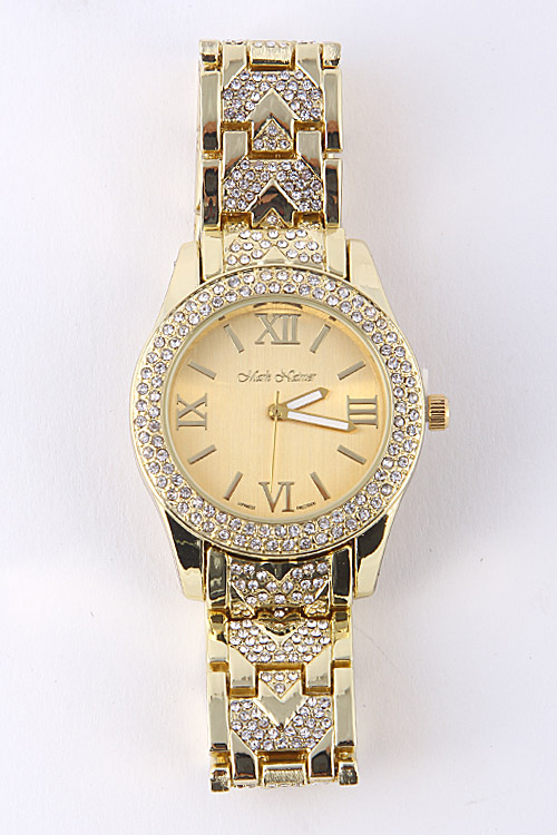 - * Chevron Rhinestone Studded Strap Watch 4LBG2 * 1.4 x 1.4" approx.