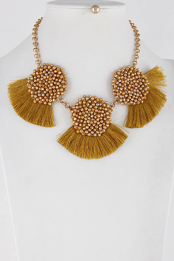 - * Multi Tassel Fan Statement Necklace Set 8ICA7