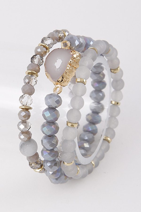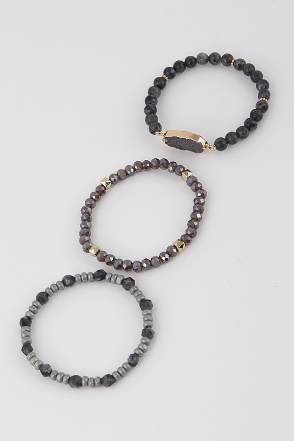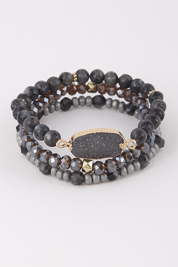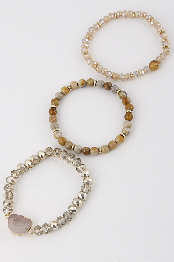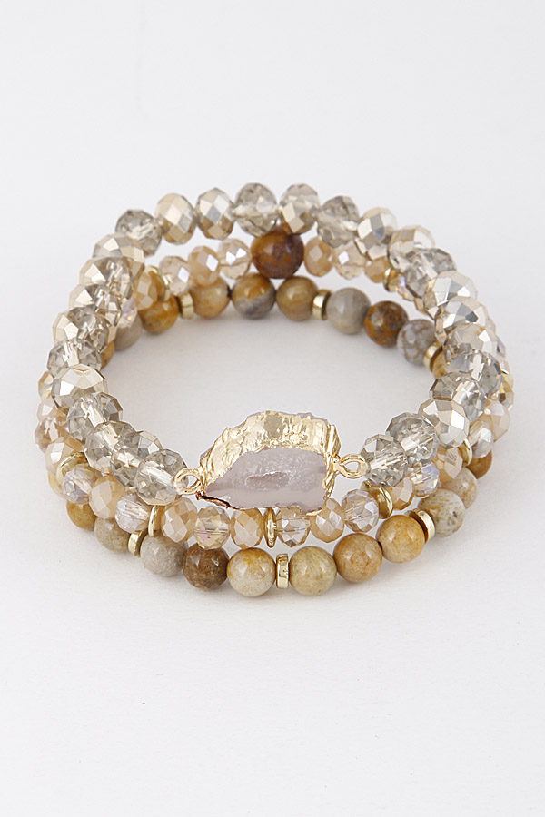 • * Bright Beaded Bracelet Set With Druzy Stone 8JBB7