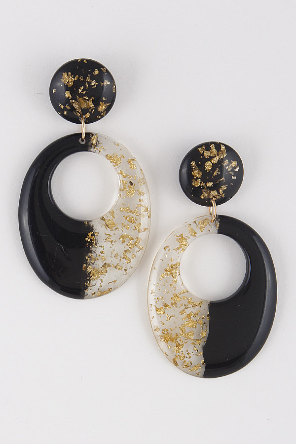 - * Black and Clear Gold Flake Earrings 9DBA9