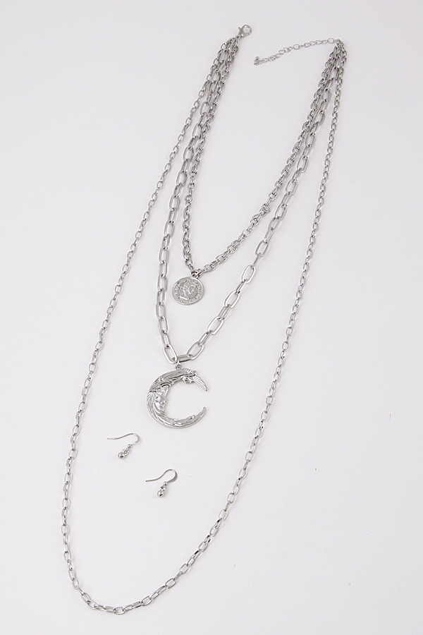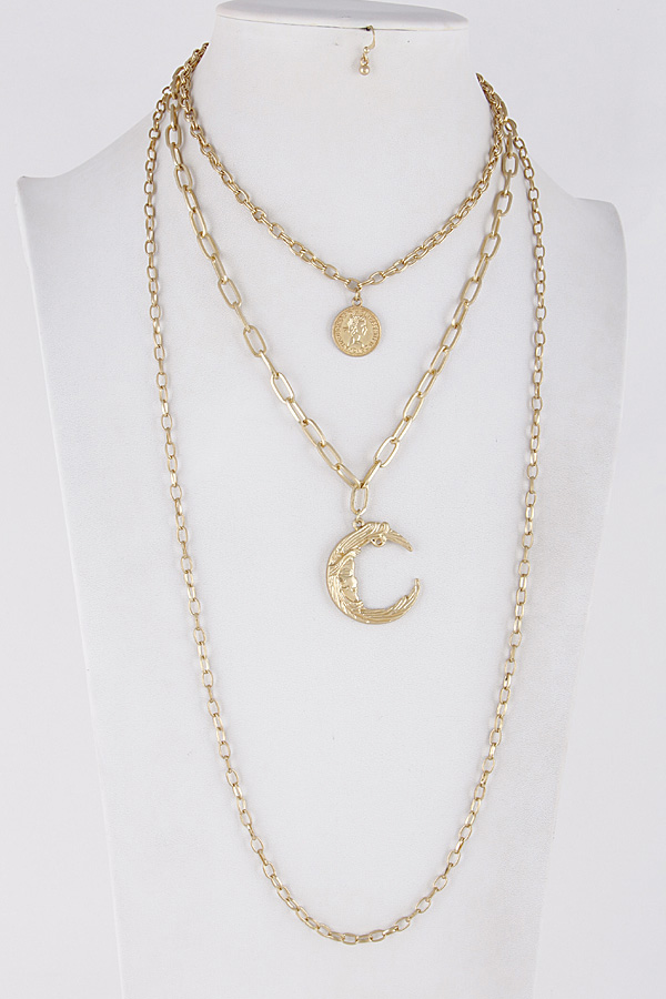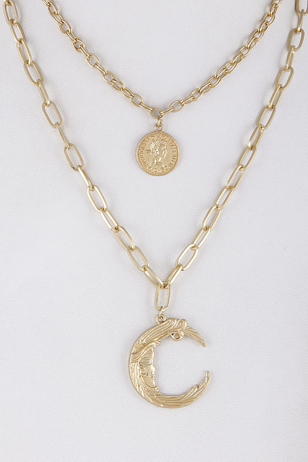 • * Layered Chain Mixed Moon & Coin Necklace 8LAD8