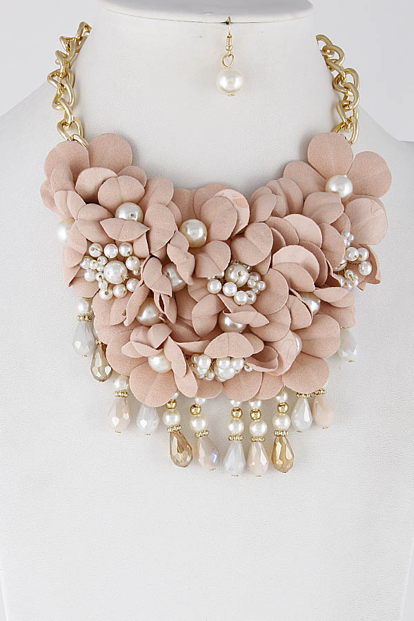 - * Elegant Flower & Pearl Beaded Necklace 8IBC6