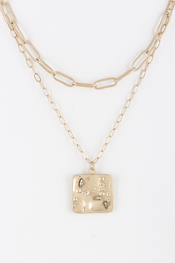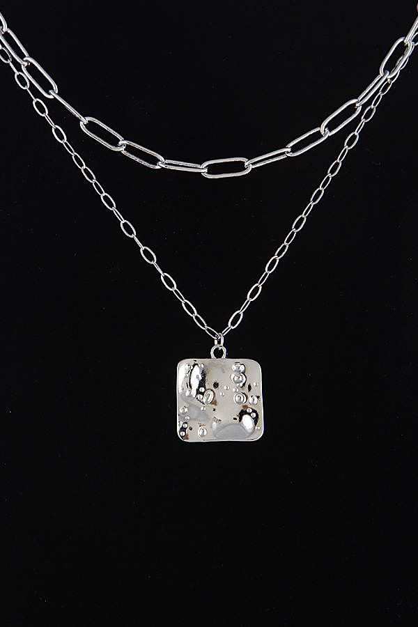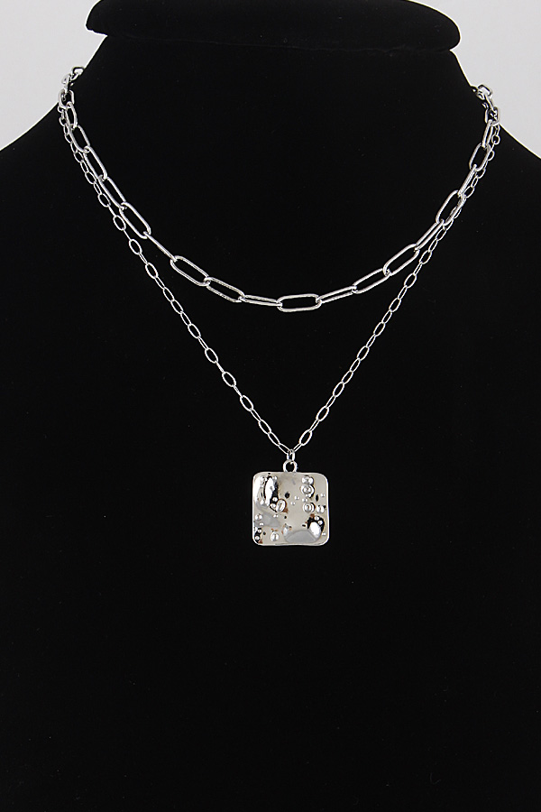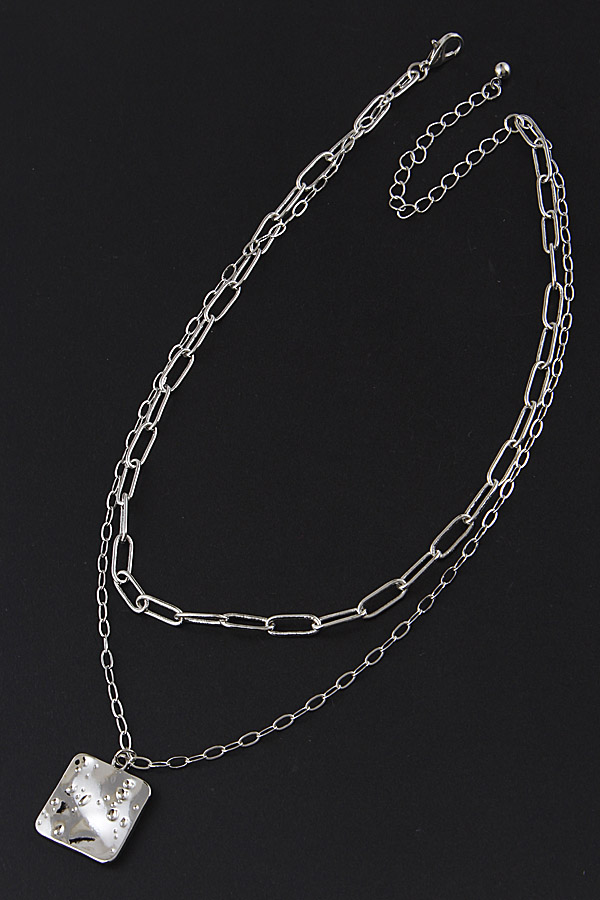 - * Double Chain Layered Necklace With Square Detail 9BCC10